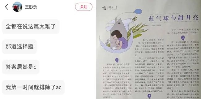 作者“理解”不了自己的文章,这不是个别现象。2022年作家鲍尔吉·原野的一篇文章被选为考题,因为太难,学生于是到微博上向作者求助,作者直接把原文拍了下来,学生这才发现作者并没有什么“深意”;2019年王亚创作的散文《清明》出现在某地高二年级语文统考的试卷上,原作者在做这道满分20分的阅读理解题时,只得了6分;2018年,作家周国平在接受采访时直言:“我做自己文章的阅读理解,分数还不如学生”;2017年某地高考试卷,有一道阅读理解问鱼眼里“一丝诡异的光”是什么,学生问了作者,作者只好放了张鱼的表情包,说“这就是诡异的光”……