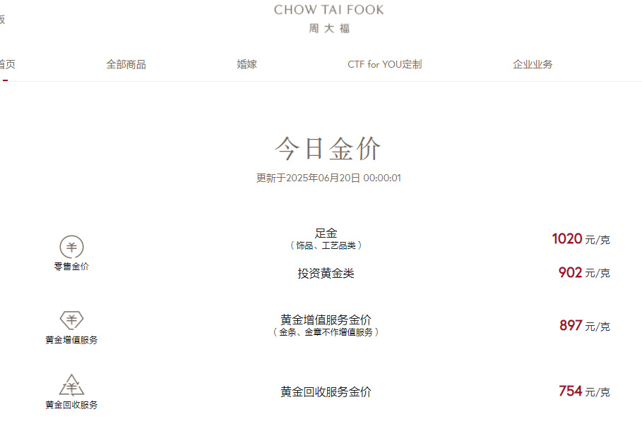 此外,老庙黄金为1012元/克,较16日下跌19元/克;周大福为1020元/克,较16日下跌15元/克;老凤祥为1018元/克,较16日下跌17元/克。